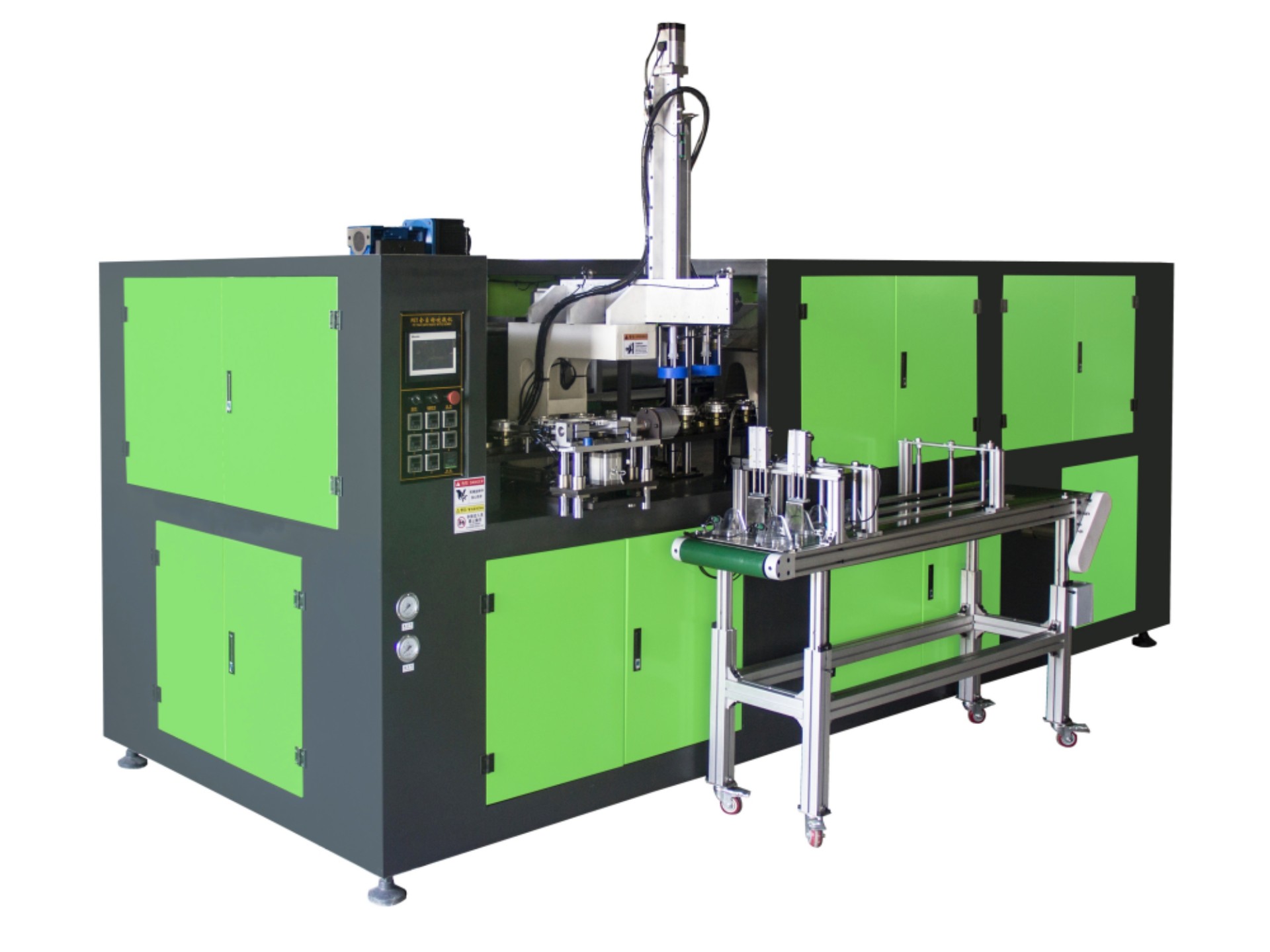 廣口一出二全自動吹瓶機(jī)主要用于PC、PS、PET廣口易拉罐吹瓶生產(chǎn)